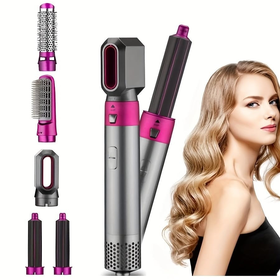 The5 in 1 Hot Air Styler dryer comes with five interchangeable brush attachments that make straightening, curling, volumizing, and scalp massaging a breeze